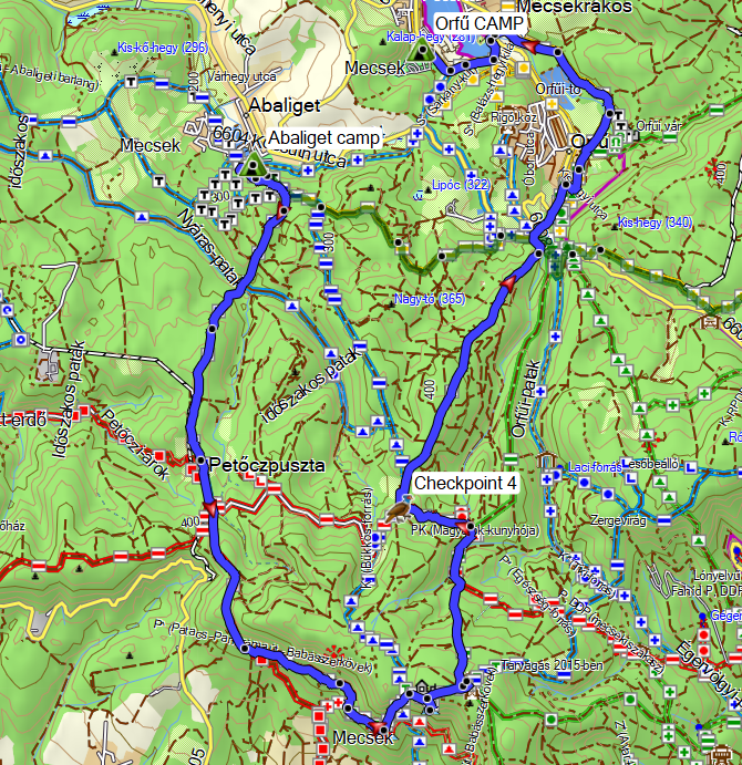 Abaliget - Petőczpuszta - Babás szerkövek - Jakab-hegy - Nagy-gödör, check point - Sárkány-szakadék - Orfűi-tó - Panoráma Camping, Finish